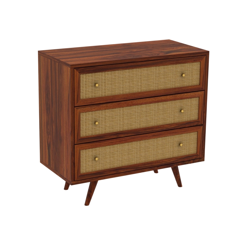 Wooden 3 Drawer Chest with Natural CaneCane